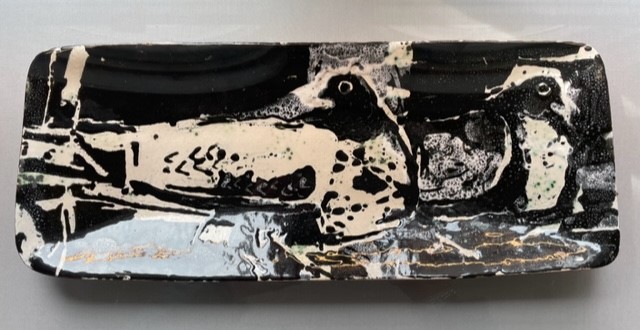 Above Celia Cook, Variant 22 a woodcut, and finally the piece below is a new acquisition at Chippenham Museum, it's 'Large Platter with Doves' by James Tower, purchased with support from ACE/ V&A Purchase Grant Fund and Art Fund.